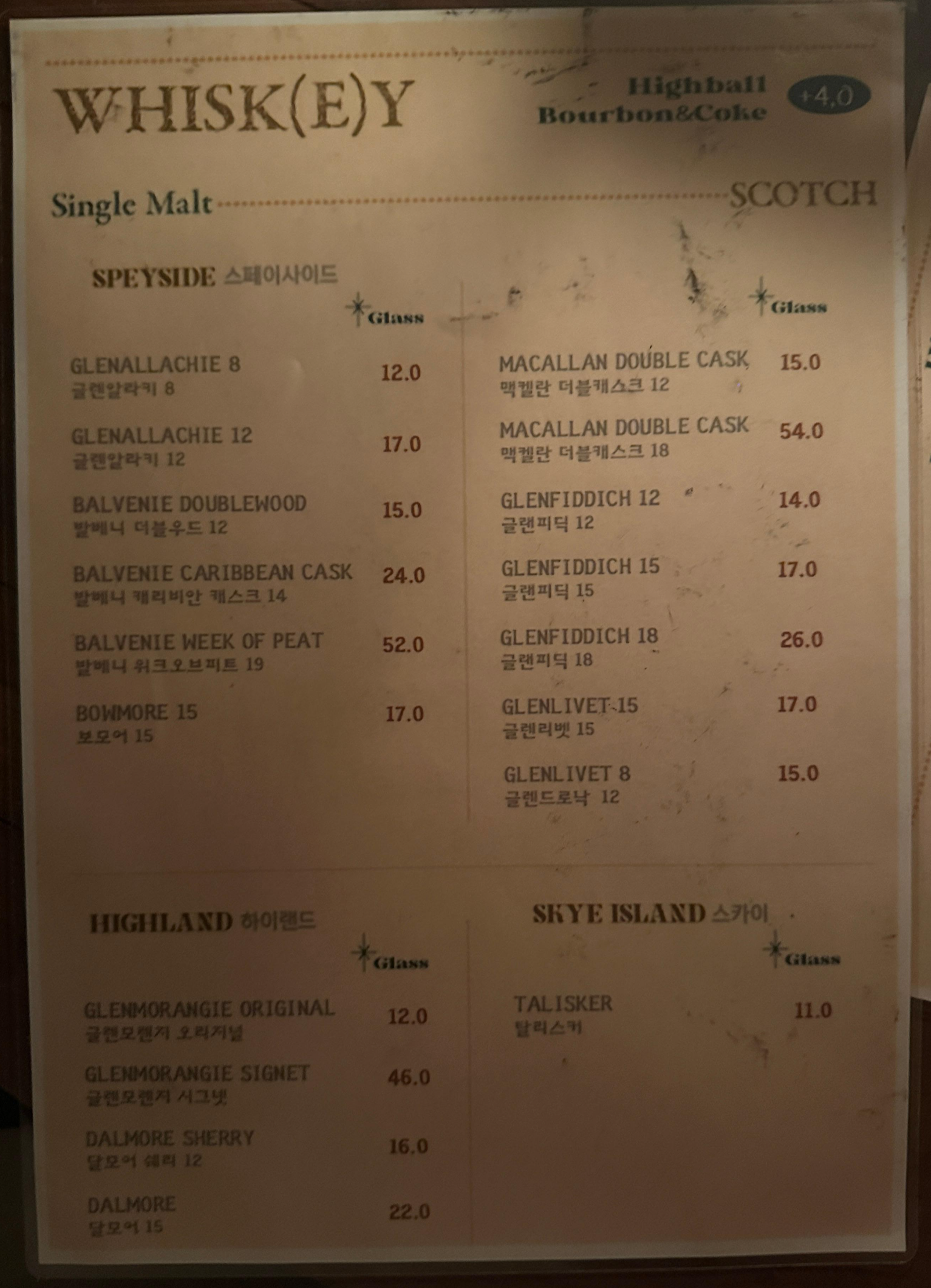 휼레 또한 저녁에 운영하는 Bar 입니다. 와인 위스키 하이볼 등을 판매하며,