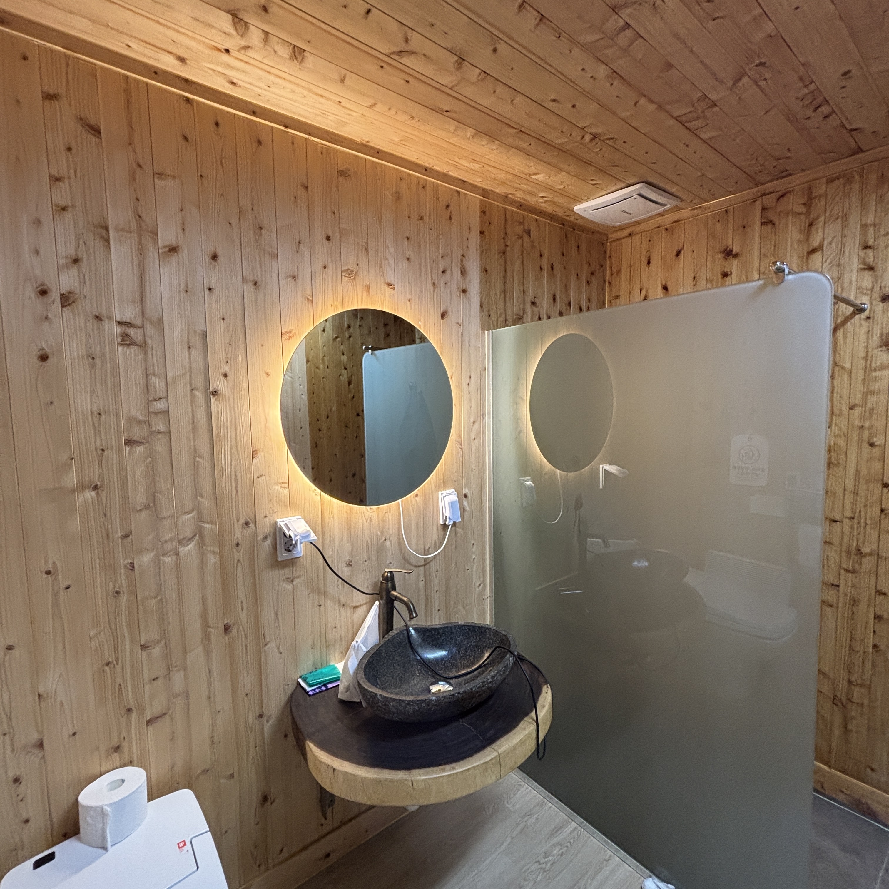 바로 뒤편에 화장실 건물이 있으며, 화장실은 각 사이트별로 독립적으로 운영하고 있습니다.